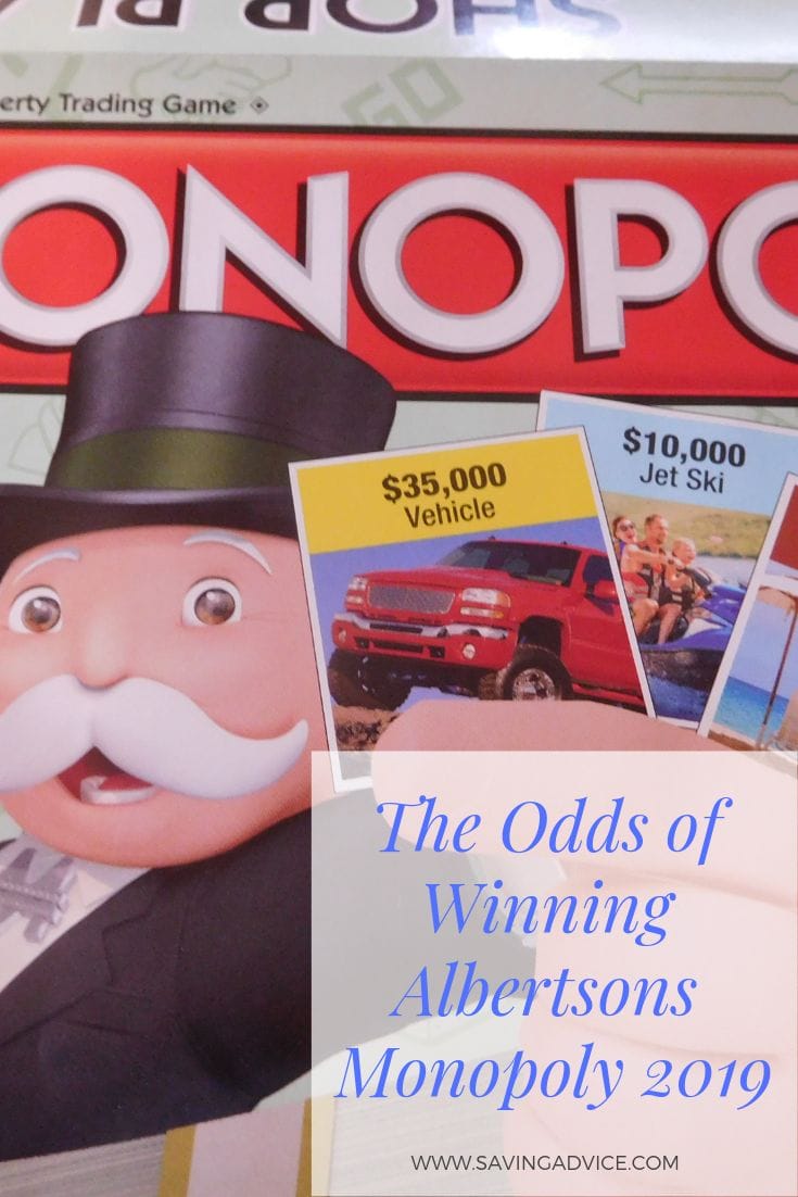 The Odds of Winning the Albertsons Monopoly Game 2019 Albertsons Monopoly is back for its 11th year. The contest, which involves collecting Monopoly game pieces from various ... read the story
