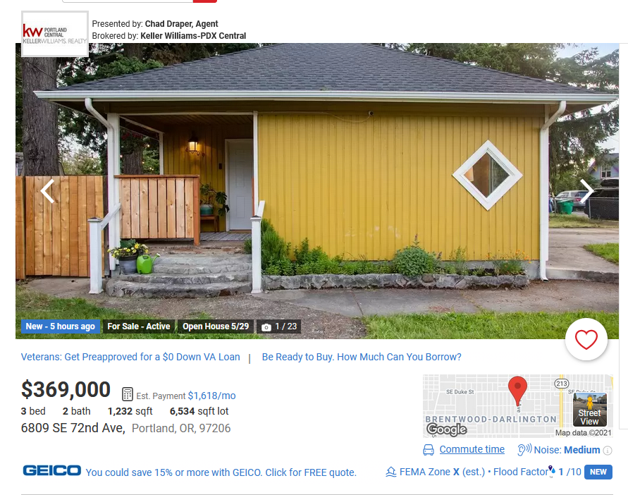 This one is priced at $380K, and is just down the street from me. It was on the market for about 24 hours.